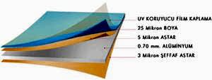 Boya Kalınlığı: 5 mikron astar + 20 mikron PVdF boya veya 5 mikron astar + 20 mikron polyester boya.
