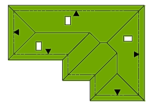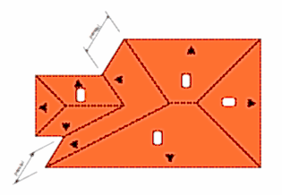 Aşağıda değişik geometrideki bir bina çatısının tanzimi görülmektedir.