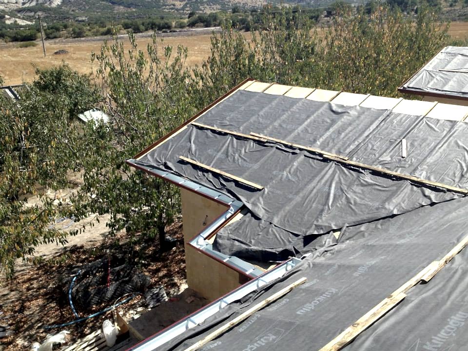 Çatı saçaklarının ısı izolasyonuna dolaşmasını engellemek ve iç mekanların daha kısa sürede ısıtılmasını sağlamak için ısı yalıtım tabakası çatı plağının alt tarafına uygulanabilir. Çatı havalandırması ve su tahliyesi plak üzerindeki mertekler yardımı ile yapılır ve üzerine çatı kaplamaları gelir. Fakat iç taraftan buhar kesici örtü veya boya kullanılması gerekir.